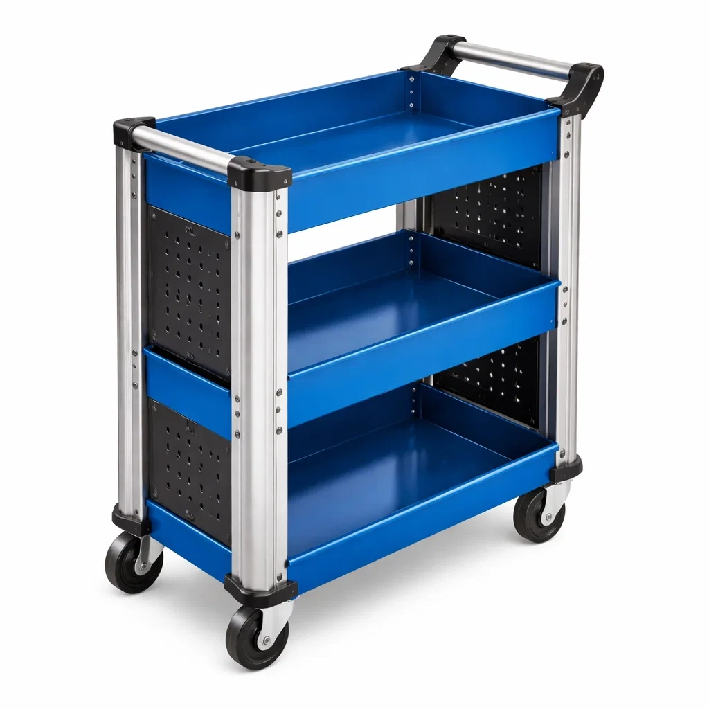 Carrello portautensili a 3 Ripiani in Metallo con Ruote Blu