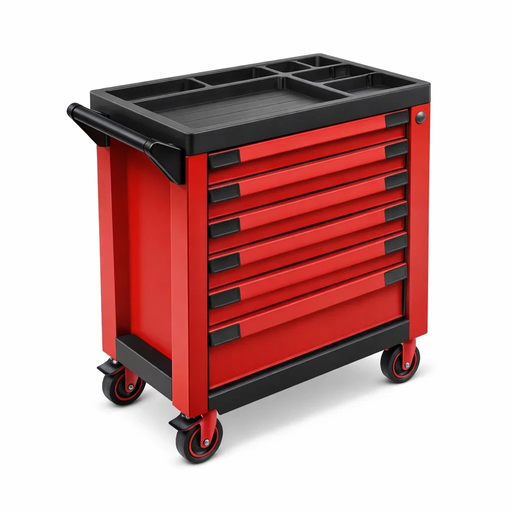 Carrello portautensili in Acciaio Rosso con 6 Cassetti e Ruote