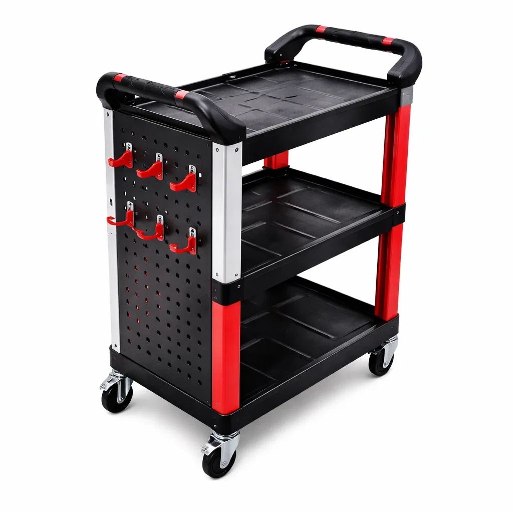 Carrello portautensili a Tre Ripiani in Metallo e Polipropilene Nero e Rosso con Ruote