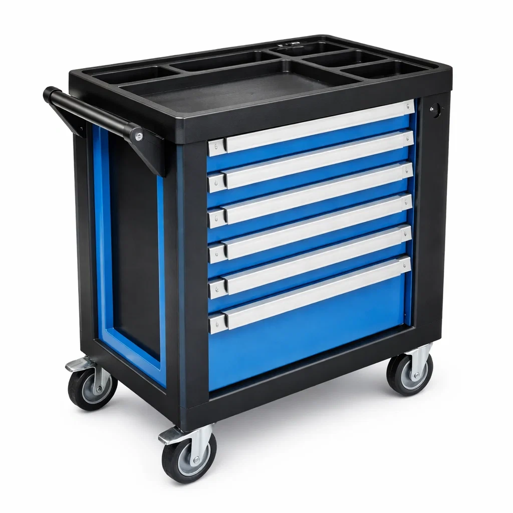 Carrello portautensili in Acciaio Verniciato Blu con 6 Cassetti e Ruote Girevoli