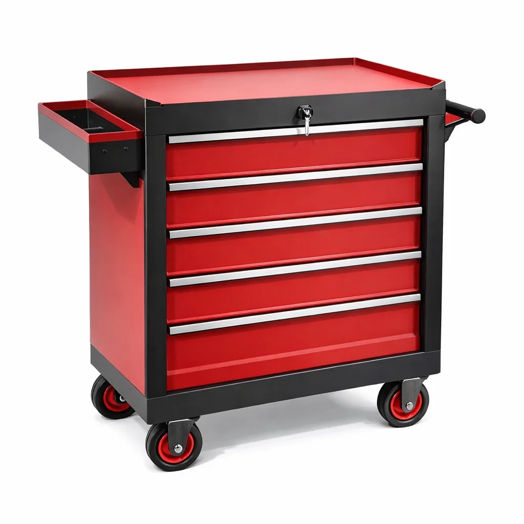 Carrello portautensili in Acciaio al Carbonio Rosso con 5 Cassetti e Ruote