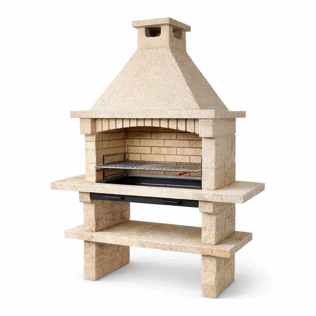 Barbecue in Pietra Calcarea con Mattoni Refrattari