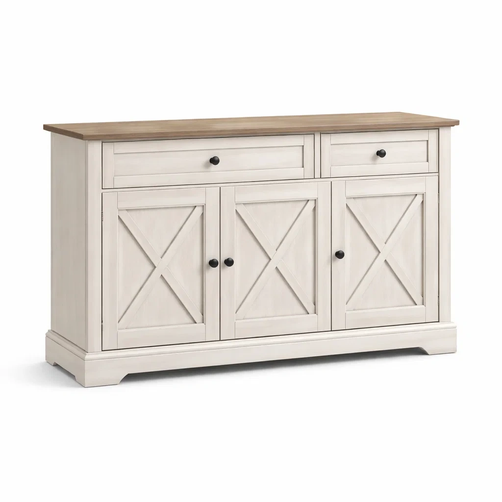 Dettagli del prodotto: maniglie in metallo, design con motivi a X sulle ante