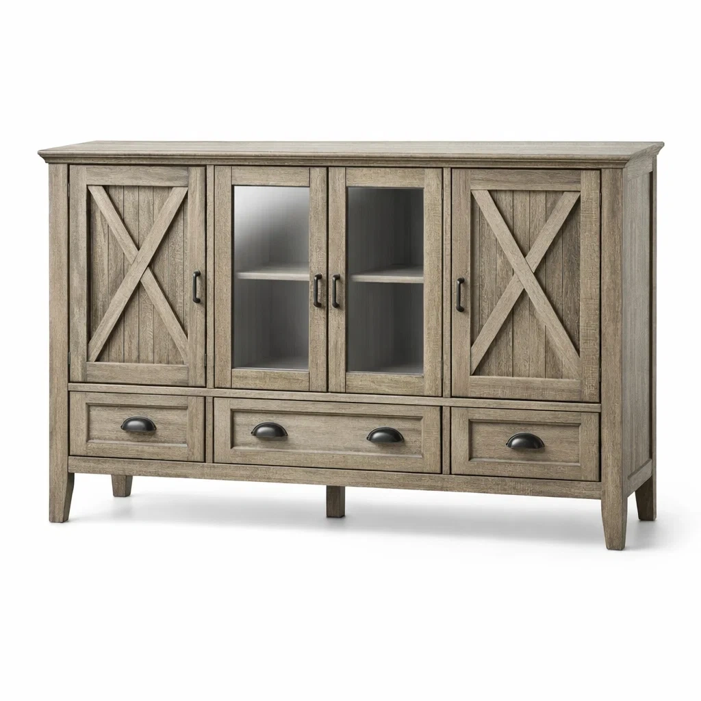 Caratteristiche: Ante in vetro, tre cassetti in legno, sezioni interne con ripiani