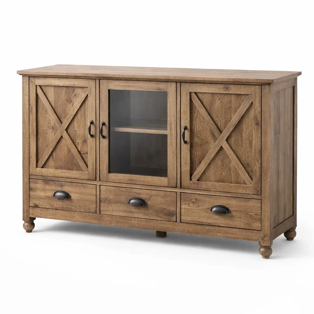 Credenza in MDF con Ante in Vetro Temperato Marrone Dimensioni 150 x 45 x 90 cm
