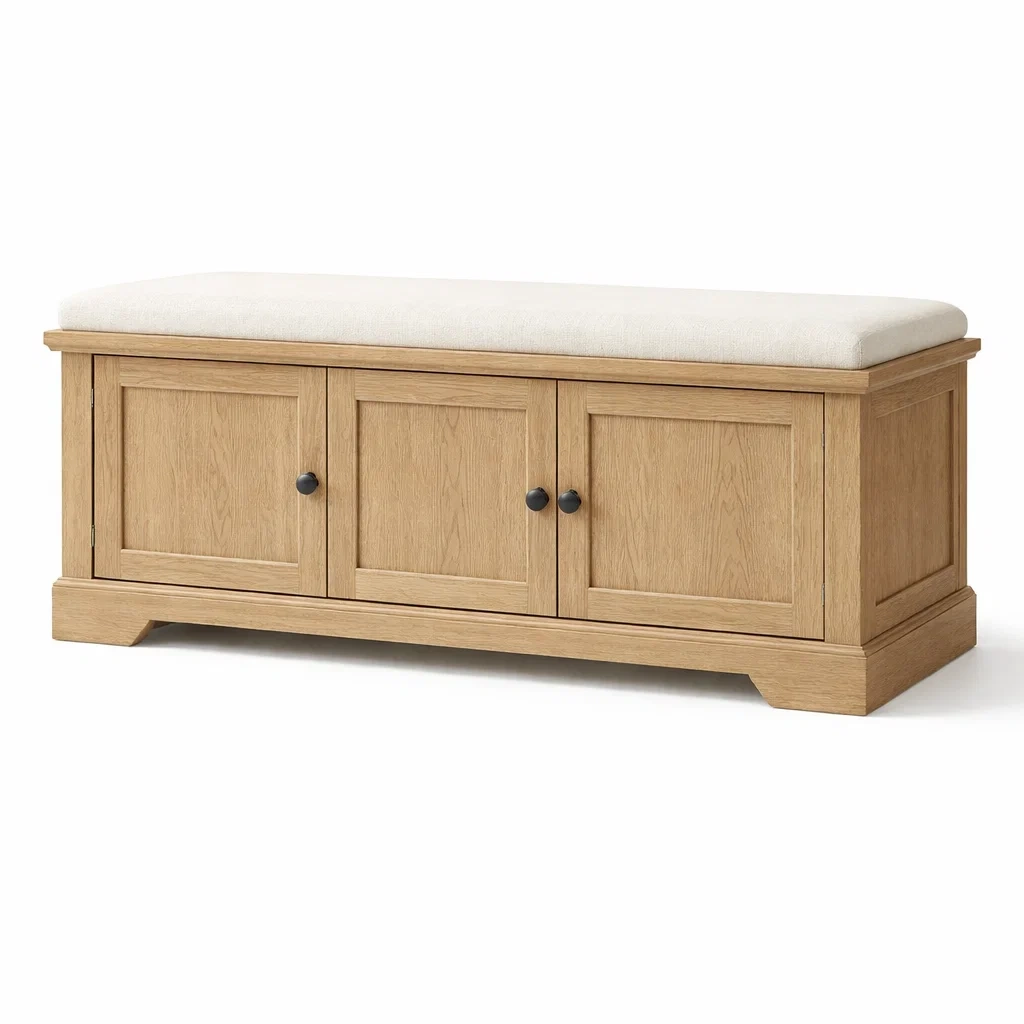 Panca contenitore in Legno con Cuscino in Tessuto Crema